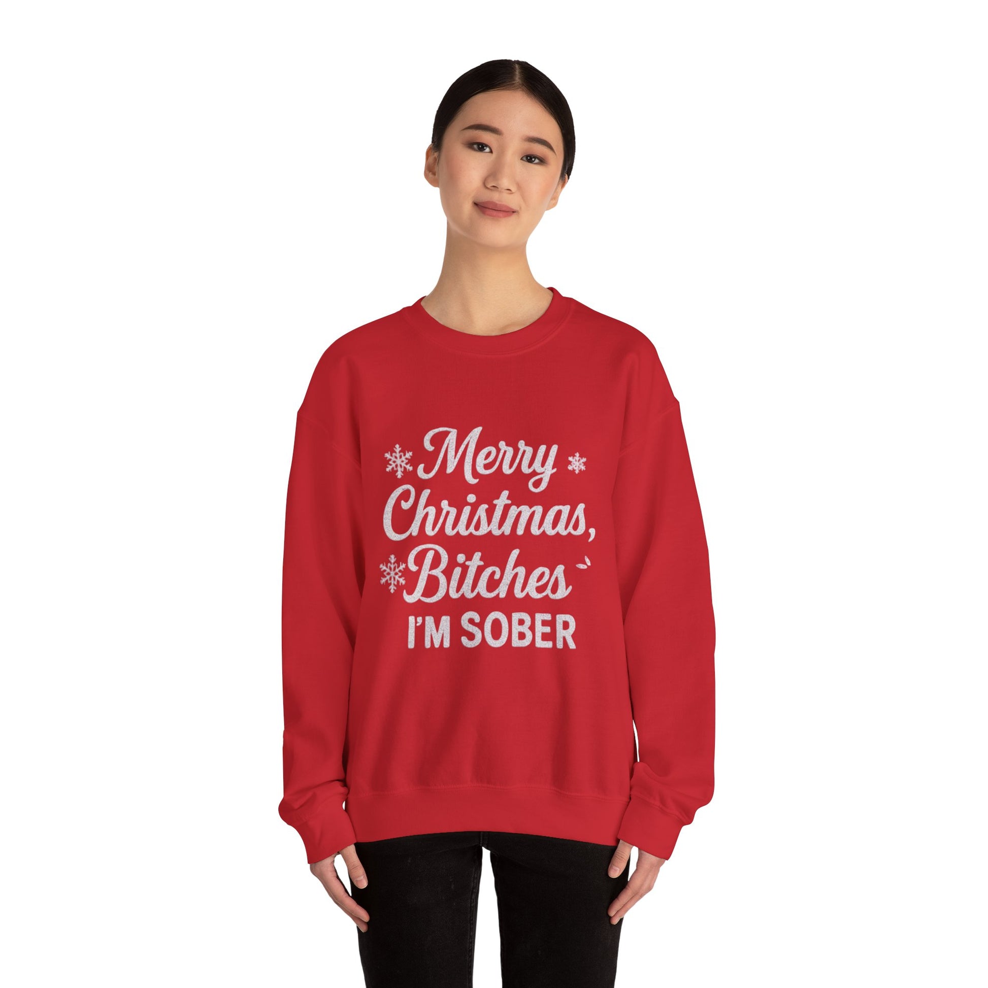 Merry Christmas Bitches, I'm Sober Women Heavy Blend™ Crewneck Sweatshirt